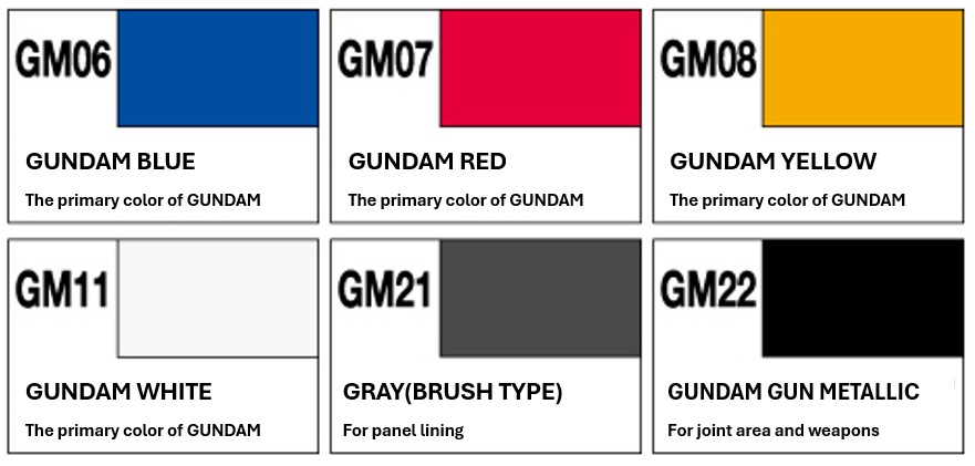 GUNDAM MARKER BASIC SET includes 6 markers that will let you easily enjoy GUNPLA painting .