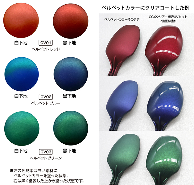 ベルベットの色調を表現するには下地の色は黒が基本となりますが、