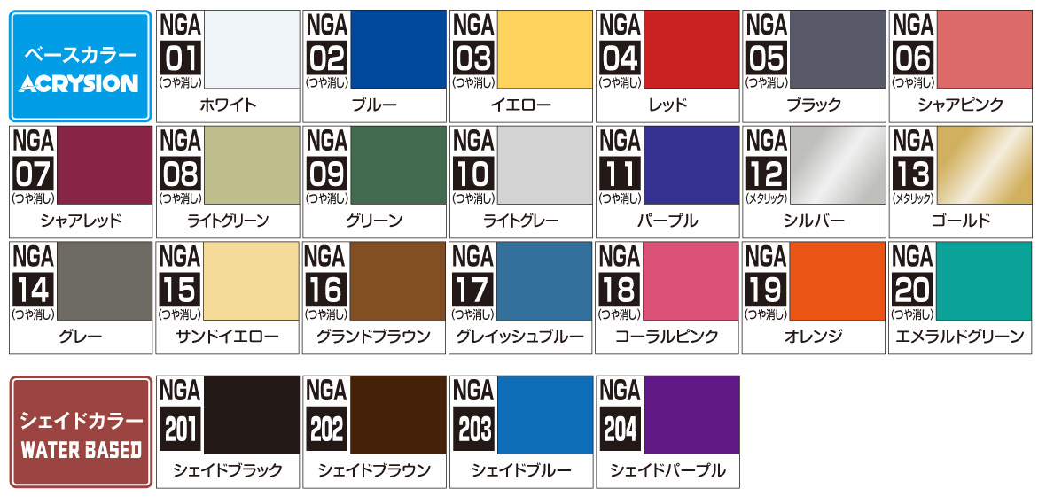 【ベースカラー】(アクリジョン つや消し/ シルバー・ゴールドはメタリック)